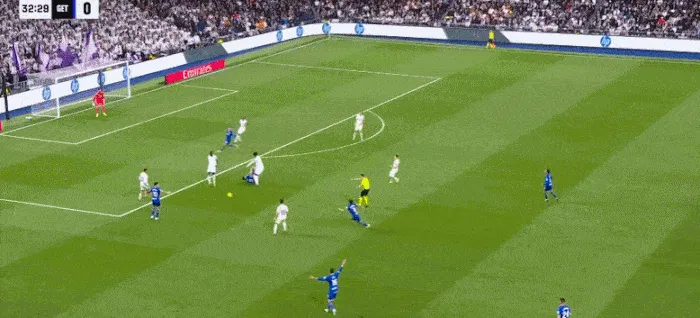 阿兰巴里飞身撞倒居莱尔破坏反击,被主裁判黄牌警告